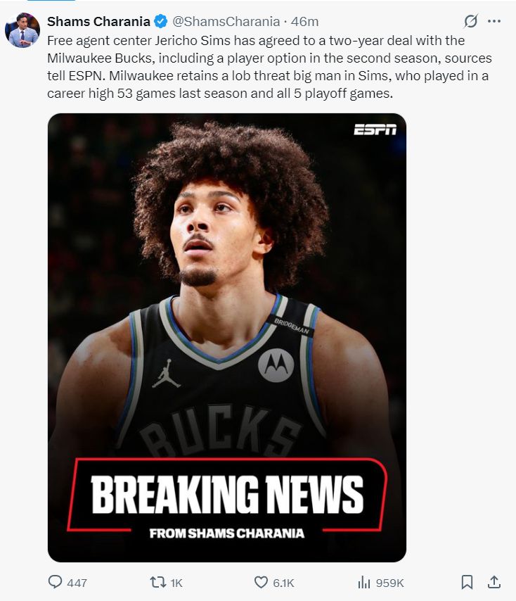 截止北京时间7月2日凌晨1点30分,密尔沃基雄鹿队的运作才有所停滞,他们刚刚用康诺顿+2个次轮签松岛夏洛特黄蜂队换来了控球后卫瓦西里耶-米西奇。米西奇2023年离开欧洲后与雷霆签约,之后辗转太阳、黄蜂,今夏刚刚被太阳在马威的交易中送回黄蜂。