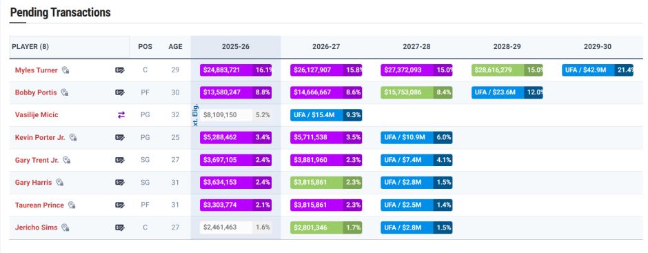 雄鹿队这9笔运作等于是引进8人,这8人下赛季的薪水:特纳2488万、波蒂斯1358万、米西奇810万、小波特528万、特伦特369万、哈里斯363万、普林斯330万、希姆斯246万,这8人合计才6492万美元。